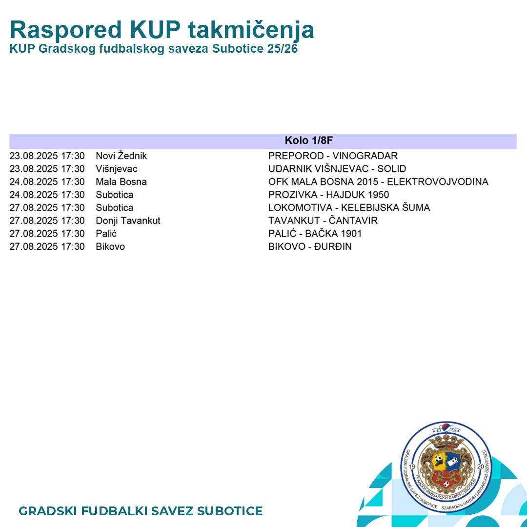 Kelebijska šuma – Solid 2:0 (0:0) Gradski stadion u Subotici. Gledalaca: oko 1.000. Sudije: Filipović Vanja, Vukanović Nenad, Vukas Saša. Četvrti sudija: Berenji Ljubiša. Strelci: 1:0 Babić Denis (62. min iz penala), 2:0 Drobina Danijel (85. min) Kelebijska šuma: Ibraimović,…