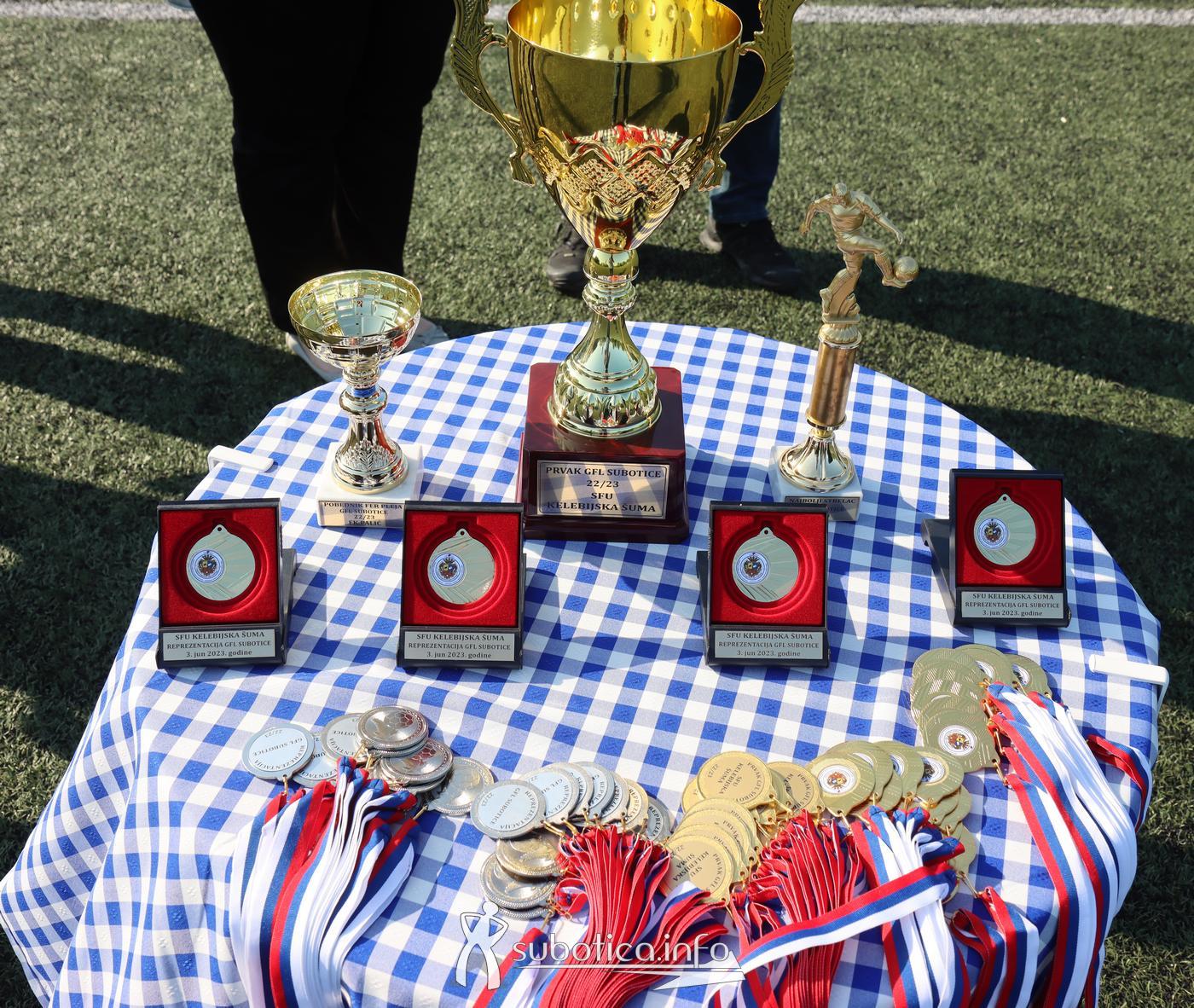 Pre početka revijalne utakmice dodeljen je šampinski pehar kao i zlatne medalje prvacima. Medalje su dobili i fufdbaleri koji su sačinjavali reprezentaciju Lige. FK Palić dobio je pehar za fer plej a dodeljen je i pehar za najboljeg strelca lige. Šampionski pehar uručila je Nataša Aleksić, član gradskog veća zadužena za sport i omladinu.